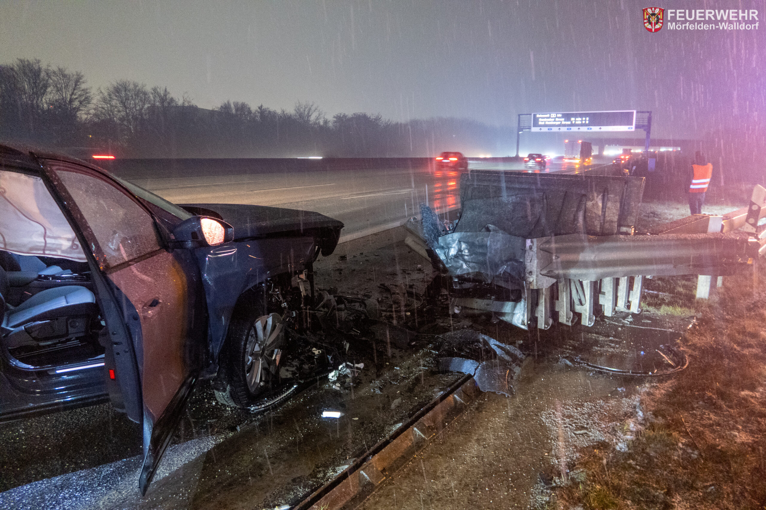 Am Donnerstagabend wurde die Feuerwehr Mörfelden-Walldorf zu einem Verkehrsunfall auf die Autobahn 5 in Fahrtrichtung Frankfurt alarmiert. Laut erster Meldung sollte es im Bereich der Anschlussstelle Zeppelinheim zu einem Alleinunfall eines Pkw gekommen sein.