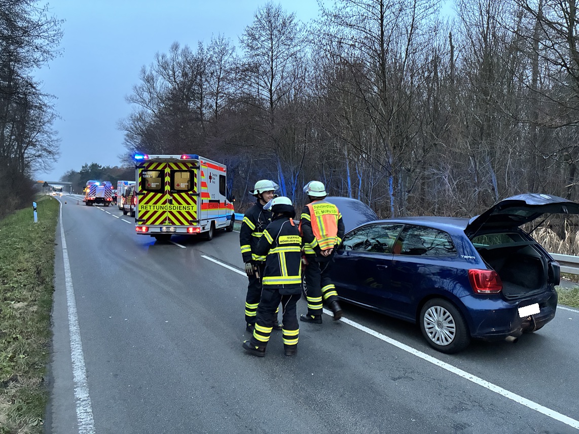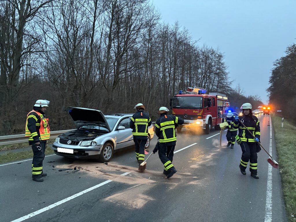 Am Freitagmorgen wurde die Feuerwehr Mörfelden-Walldorf gemeinsam mit dem Rettungsdienst und der Polizei zu einem Verkehrsunfall auf der B 44 alarmiert. Dort kam es zu einem Auffahrunfall mit zwei PKW.